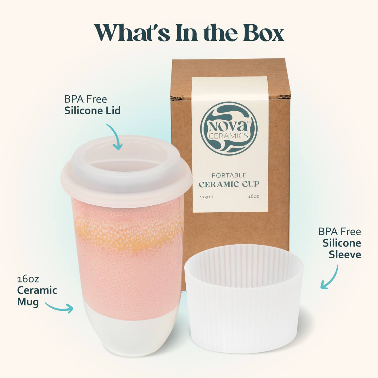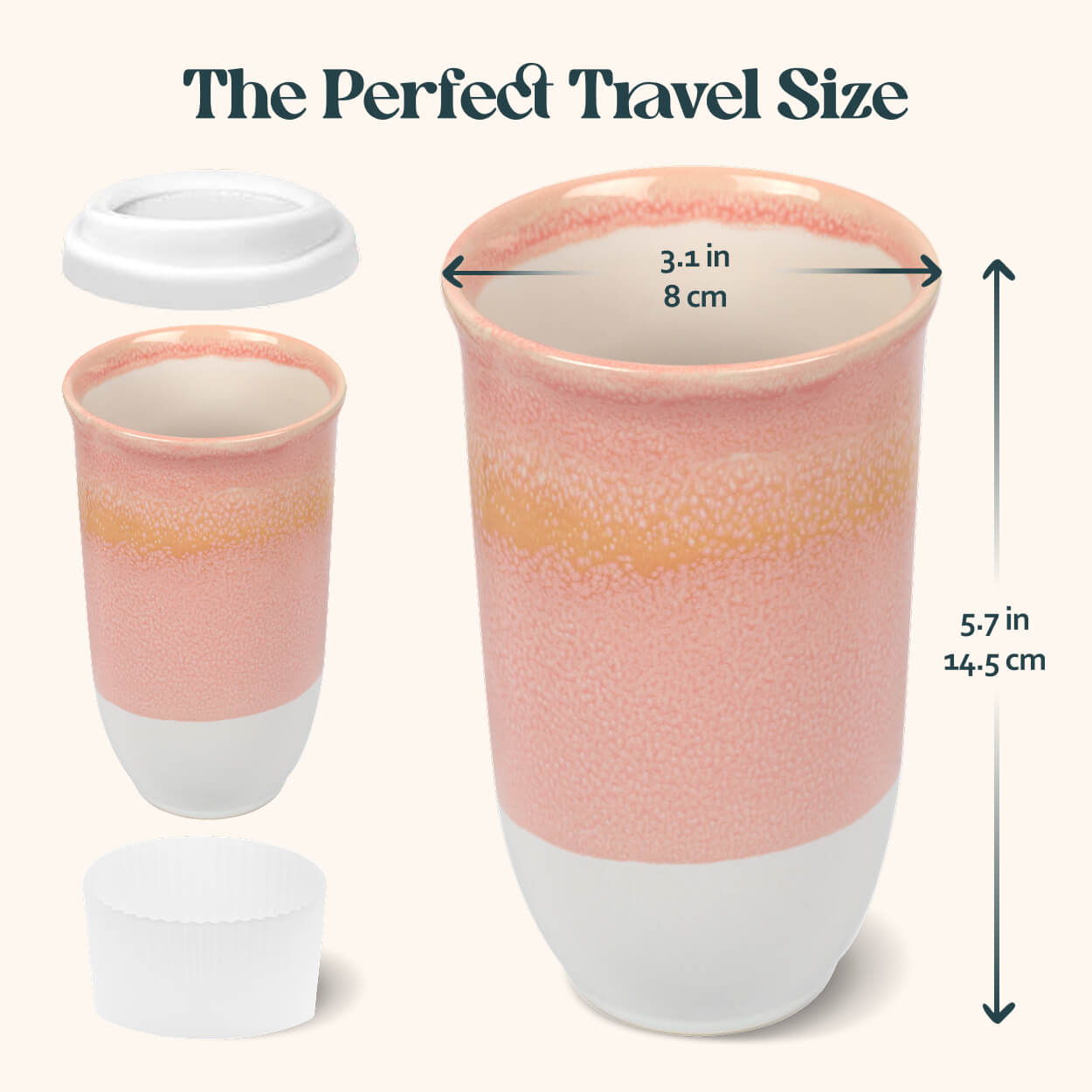 Perfect for on-the-go or home, our travel cups are made from high-quality stoneware ceramic, offering the purest taste. A fitted silicone lid and sleeve make them seamless to use (and reuse). They're microwave and dishwasher safe, so all you have to think about is enjoying every sip.