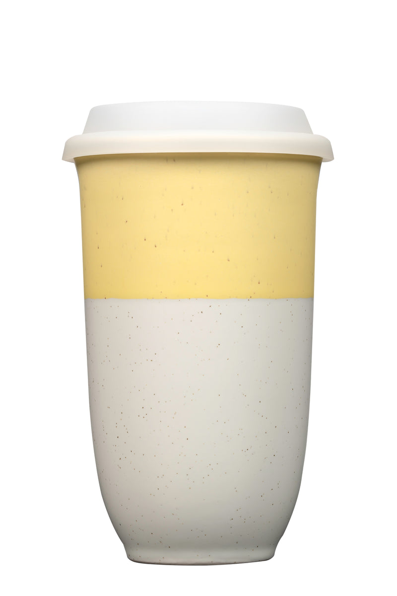 Perfect for on-the-go or home, our travel cups are made from high-quality stoneware ceramic, offering the purest taste. A fitted silicone lid and sleeve make them seamless to use (and reuse). They're microwave and dishwasher safe, so all you have to think about is enjoying every sip.